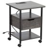 Home > Side Table with Charging Station and Wheels, Rolling End Table with 2 USB Ports and 2 Outlets and Power Switch, Nightstand with Storage Shelves and Dr