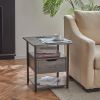 Enhance your living space with the our versatile Side Table. Designed to cater to the modern necessity of keeping electronic devices charged and within arm's reach, this grey end table with a built-in charging station is a compact solution for small spaces. The rolling feature adds mobility, so you can shift your setup with ease, while the drawer and shelves serve to keep your essentials organized and your space clutter-free.